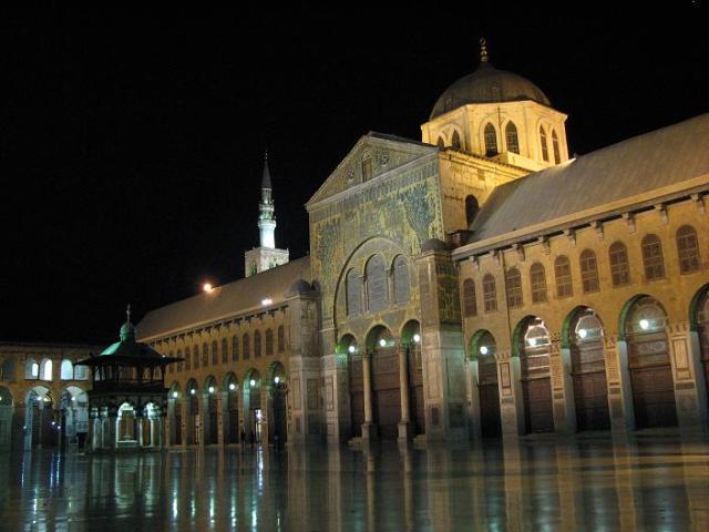 Last night I wandered around the old city, stopping for pistachio encrusted ice cream, felafel and a fresh squeezed orange juice. Not sure my stomach can handle the blackberry juice that seems to be everywhere; I really don’t want to get sick again. The Umayyed Mosque is breathtaking at night, when the marble courtyard gleams with the reflections from the lit minarets. The interior is nicely decorated, but not as overwhelming as the mosques in Istanbul. The rectangular layout might have something to do with it.