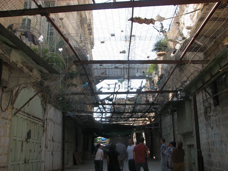 To me, the more insidious violence is the everyday interaction, not the massacres. The old city souq is covered with protective wire to shield the Palestinian shoppers from thrown stones and bottles, although it cannot stop dirty water or urine. As I was walking through taking pictures, a young boy spit at me from several stories up, missing by inches. His aim indicated significant practice.