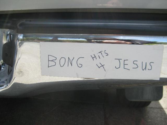 Walked through Temescal on Monday, gorging ourselves on Bakesale Betty fried chicken, steak sandwiches and strawberry shortcake, culminating in a visit to an excellent “center for reuse” store. Who knew I needed glow in the dark astrobits to spell my name in space? On the way back, noticed a sweet bumper sticker that references my favorite recent Supreme Court case. I like this town.