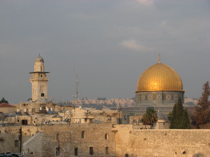 Since it’s Jeff’s first time here, we spent the afternoon trekking around the old city. Did the standard holy sites tour: Church of the Speulchre, Western Wall, Dome of the Rock. Couldn’t actually get up to the mount because it was Friday, but did see some exuberant dancing at the Kotel plaza for the second night of Hannukkah. Then walked along the eastern edge of the wall, overlooking Silwan, a Palestinian village under threat of destruction, and the Valley of Jehosphat, where the dead shall rise when Gog and Magog battle and the Lord returns in glory. Or at least that’s what wikipedia tells me.