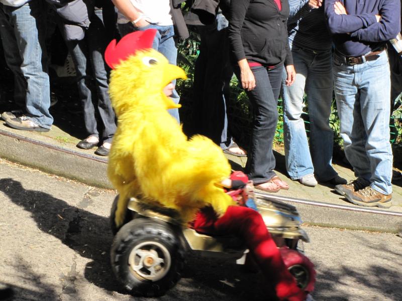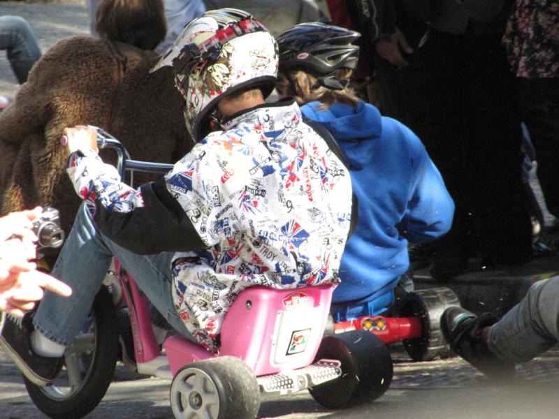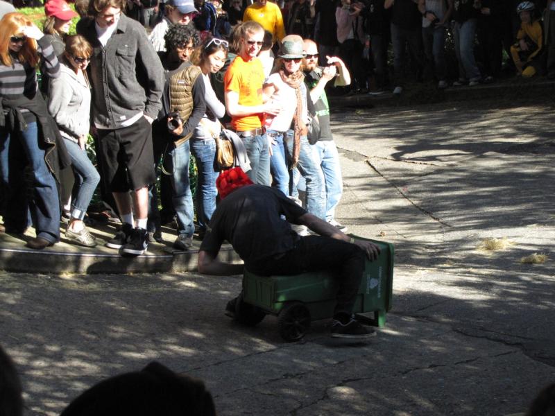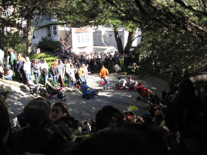 Ventured to Potrero Hill with Jeff to see the annual running of the bigwheels down Vermont St. This year I was a spectator; next year, a champion.