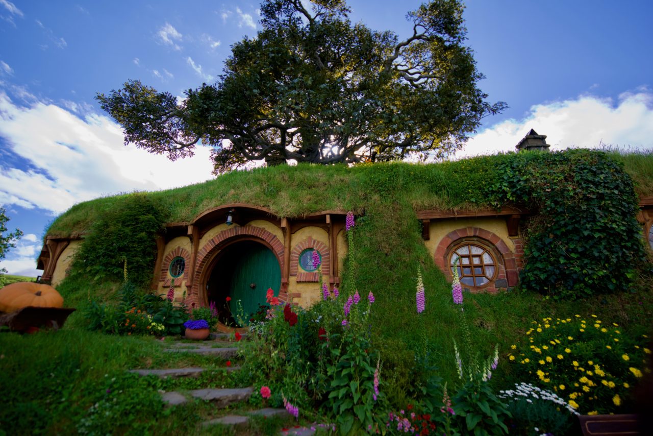 Further into the countryside, past the first of many herds of sheep, we found Hobbiton. Originally built as a styrofoam set for the first LoTR movies, it was rebuilt for the second trilogy out of more permanent materials. Now it feels a bit like Disneyland, but it was a must-stop for fans of the series. Hobbit houses dot the hillside, and the Green Dragon pub serves whole pints!