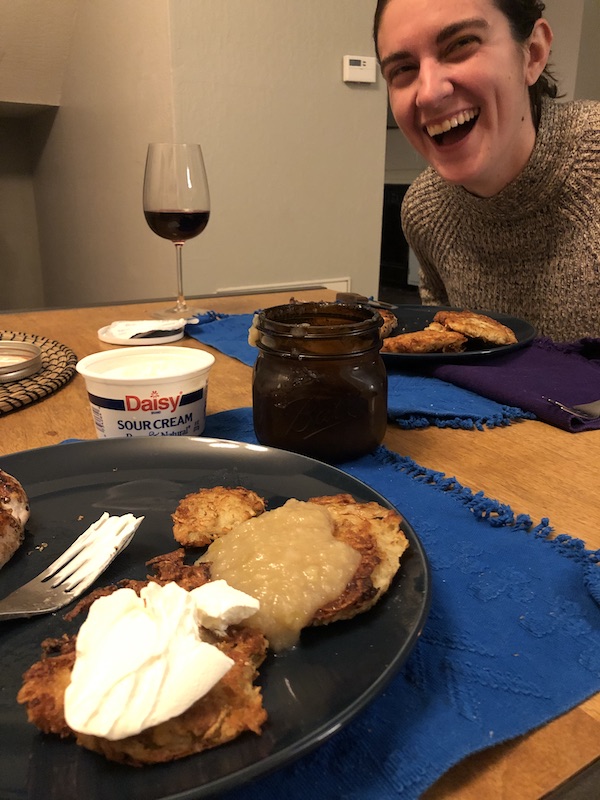 Here are step-by-step instructions to making delicious latkes. It loosely follows Martha Stewart’s recipe, but freelances a little on the way.