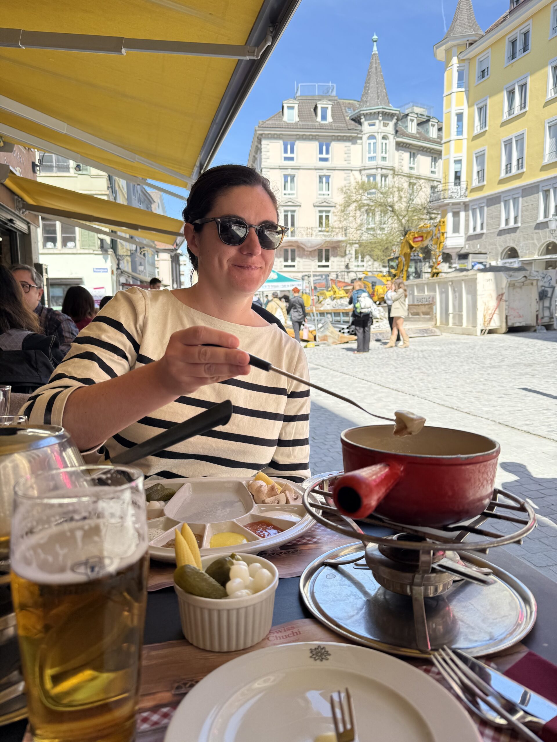 We also had a long layover in Zurich, so we had to get out of the airport and enjoy some fondue. We’ll have to come back to ride the Glacier Express. Next year!