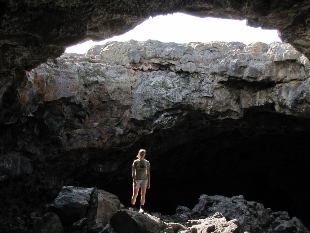 The same volcanic forces that created Crater Lake, Mount Ranier, Mount St Helens and Yellowstone also poured out onto the Snake River plain. I got a refresher book called Practical Geology, since I don’t remember much from my last formal training in eighth grade science. Turns out that the lava is blue due to the presence of titanian magnetite. We entered lava tube caves and I did a little spelunking, crawling into a cave that maintains an icy floor year round. Not quite as Indiana Jones-esque as in Belize, but a good adventure nonetheless.