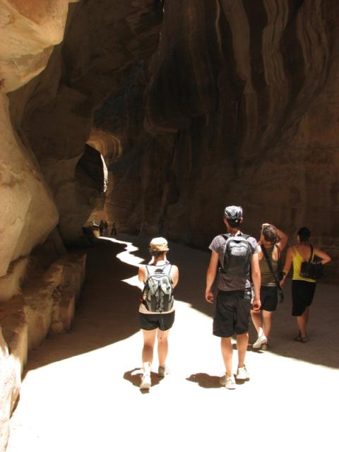 We woke in the morning to another blistering day, and made the decision to go further south. We took a taxi to the Egyptian border, singing along with the driver to “Forever Young.” We meant to catch a bus from there to Cairo but were conviced by an official, in his unofficial job as a hotel tout, to take a taxi. After some meagerly successful haggling, we got into his man’s car and sped off. And I do mean sped; we drove through the narrow canyons in the left lane on blind curves while the driver laughed gleefully. When sand covered one lane in the Sinai, we drove in the other. This was not confidence inspiring. He spoke some English, or at least enough to ask for more money, which we did not intend to agree to, but he misconstrued my response. Somehow “we’ll see when we get there” became “I’ll pay whatever you ask.” When we got to Cairo, he pulled aside an obliging police officer to help his side of the argument. We paid almost what he asked, just so he would go away. Welcome in Egypt, as they say.