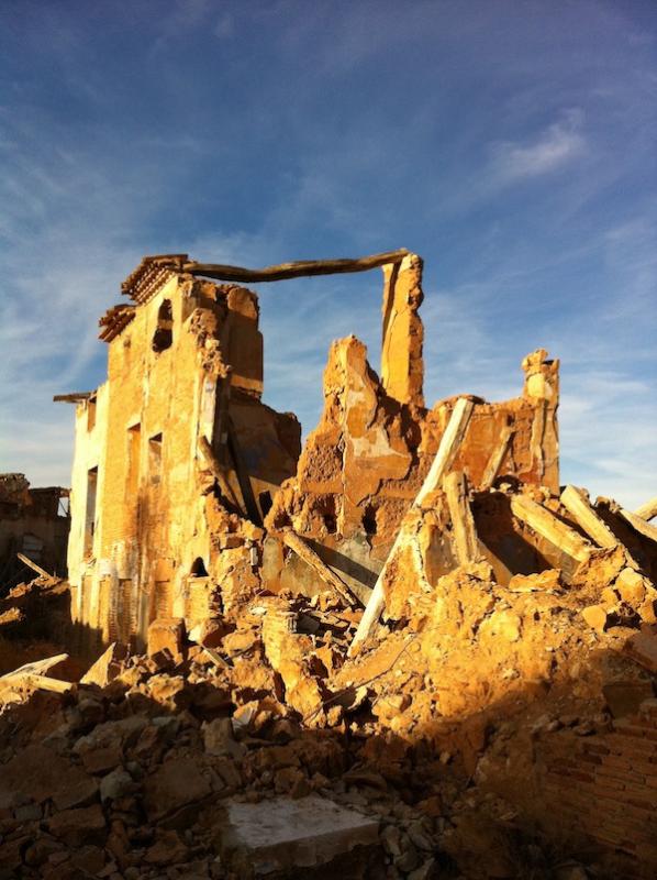 The old town of Belchite was preserved by Franco as a monument to the war and a warning to those who would further defy him. It’s an eerie place, with two ruined churches, apartments half open to the elements, and broken bricks and roof-tiles everywhere. Our hoteliers at the Casa Rural Abuela Pilar warned us that it was filled with “fantasma”, and I don’t disagree. The brutal fighting and the destruction of the town presaged the viciousness of the Second World War.